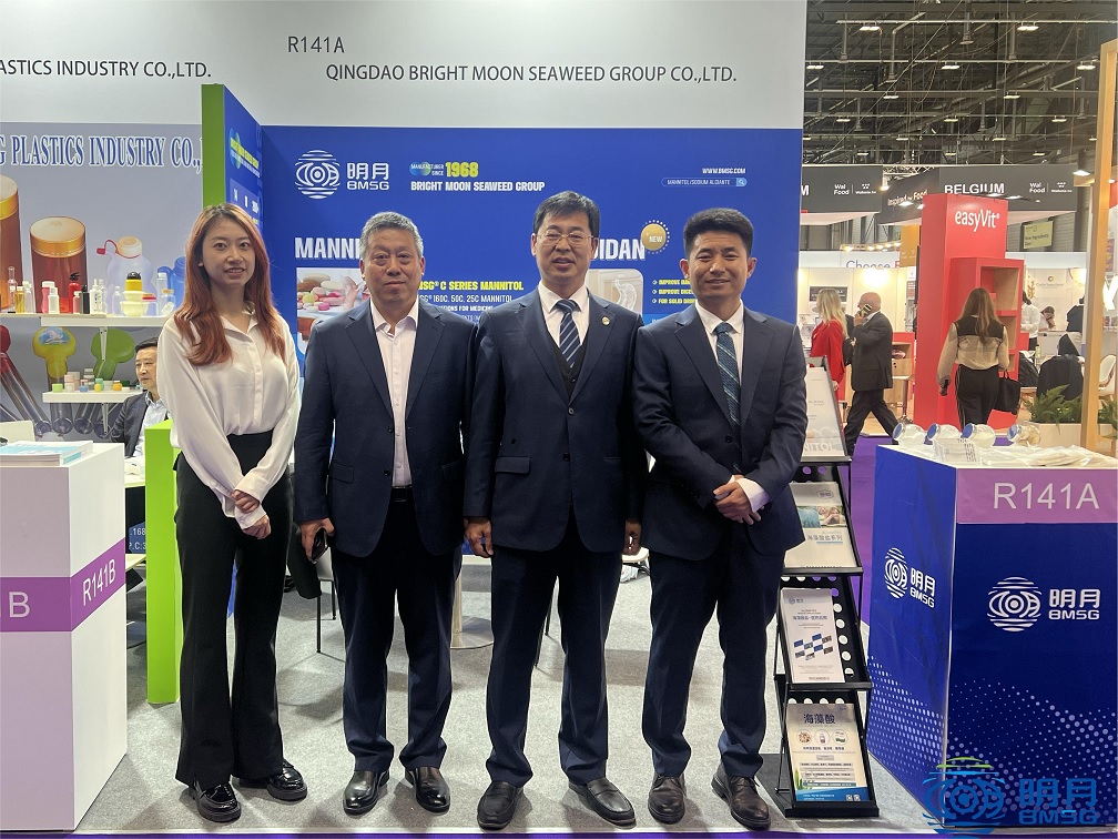 At this Vitafoods Europe exhibition, the Bright Moon professional sales team led by the Senior Vice President of the group, Jinlong Pang, showcased Bright Moon's three main industries to international clients: ALGINATE, MANNITOL, FUCOIDAN.