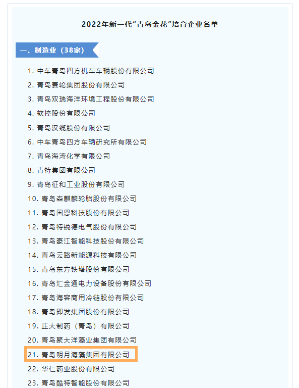 明月海藻集團(tuán)連續(xù)四年榮獲新一代“青島金花”培育企業(yè)