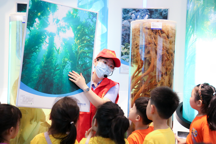 青島明月海藻集團有限公司“明月海藻世界”景區運營部講解組共14名成員,成員均為90后,是一支充滿活力、擔當作為的年輕隊伍。近年來,講解組通過強化學習海洋、海藻科普知識,掌握明月海藻集團文化、產業知識,了解青島市及國家海洋科技前沿信息,不斷提升科普講解專業素質,打造了一個善于學習、敢于創新、業務堅實的團隊。