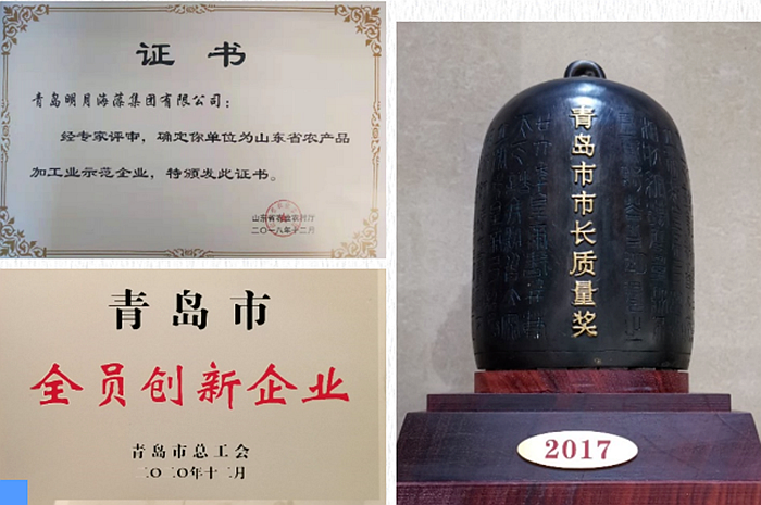 質(zhì)量興企,質(zhì)量強(qiáng)企。經(jīng)過持之以恒的奮斗和努力,明月海藻集團(tuán)榮獲國家制造業(yè)單項冠軍企業(yè)、山東省農(nóng)產(chǎn)品加工示范企業(yè)、青島市市長質(zhì)量獎、青島市全員創(chuàng)新企業(yè)等多項榮譽(yù),企業(yè)邁向了高質(zhì)量發(fā)展之路。