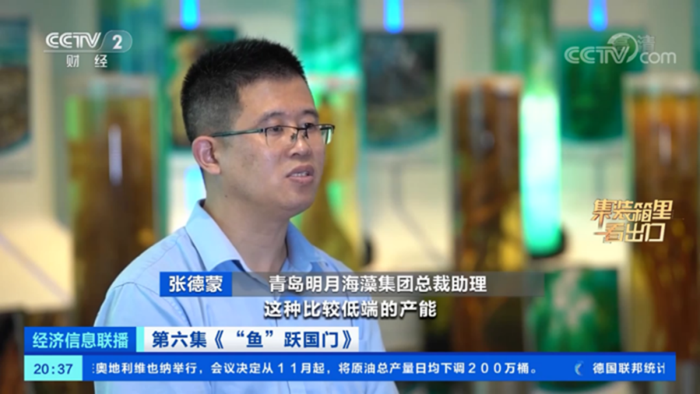 2022年10月6日,CCTV-2財經頻道《經濟信息聯播》欄目推出“集裝箱里看出口”系列報道——走進明月海藻集團,報道公司作為全球海藻生物制品行業領軍企業,堅持創新賦能和破局發展的奮進成果。