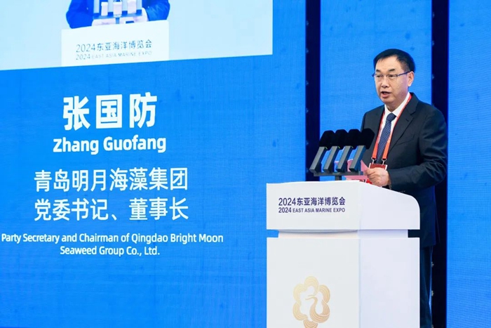 在開幕儀式上,青島明月海藻集團(tuán)黨委書記、董事長(zhǎng)張國(guó)防先生作為參展代表發(fā)表了熱情洋溢的講話。他表示,明月將繼續(xù)秉承“利用海洋資源,守護(hù)人類健康”的初心使命,積極響應(yīng)國(guó)家海洋強(qiáng)國(guó)戰(zhàn)略,不斷加大科技創(chuàng)新力度,為全球海洋健康事業(yè)做出更大的貢獻(xiàn)。